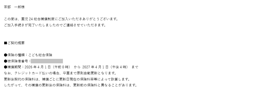 「ご加入とお支払完了のお知らせ」メールが送信され、お申込み完了画面が表示されます。