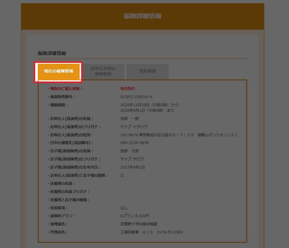 保険詳細情報の上部にある現在の保険情報タブをクリックします。